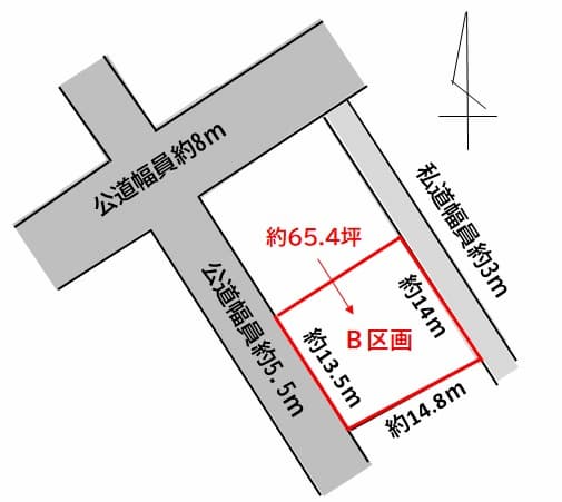 接道方向1 | 北東 | 接道間口1 | 14m |